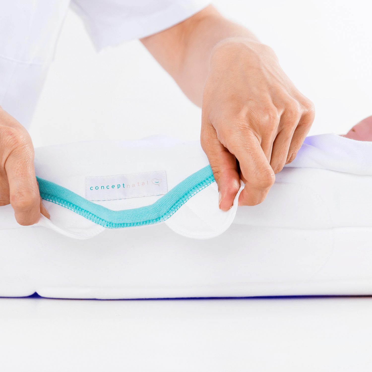Soft cushioning (3D knit fabric) for pressure relief and support of moisture management for optimum climatic control. BiliSwaddler can be used in a baby bed or in the arms of a caregiver (kangaroo care). Innovative Interlock-fabric (80% CO, 20% PES Trevira bioactive®) with a permananet antimicrobial effect is gentle and prevents skin irritation. Please use appropriate eye-protection during photo therapy sessions.