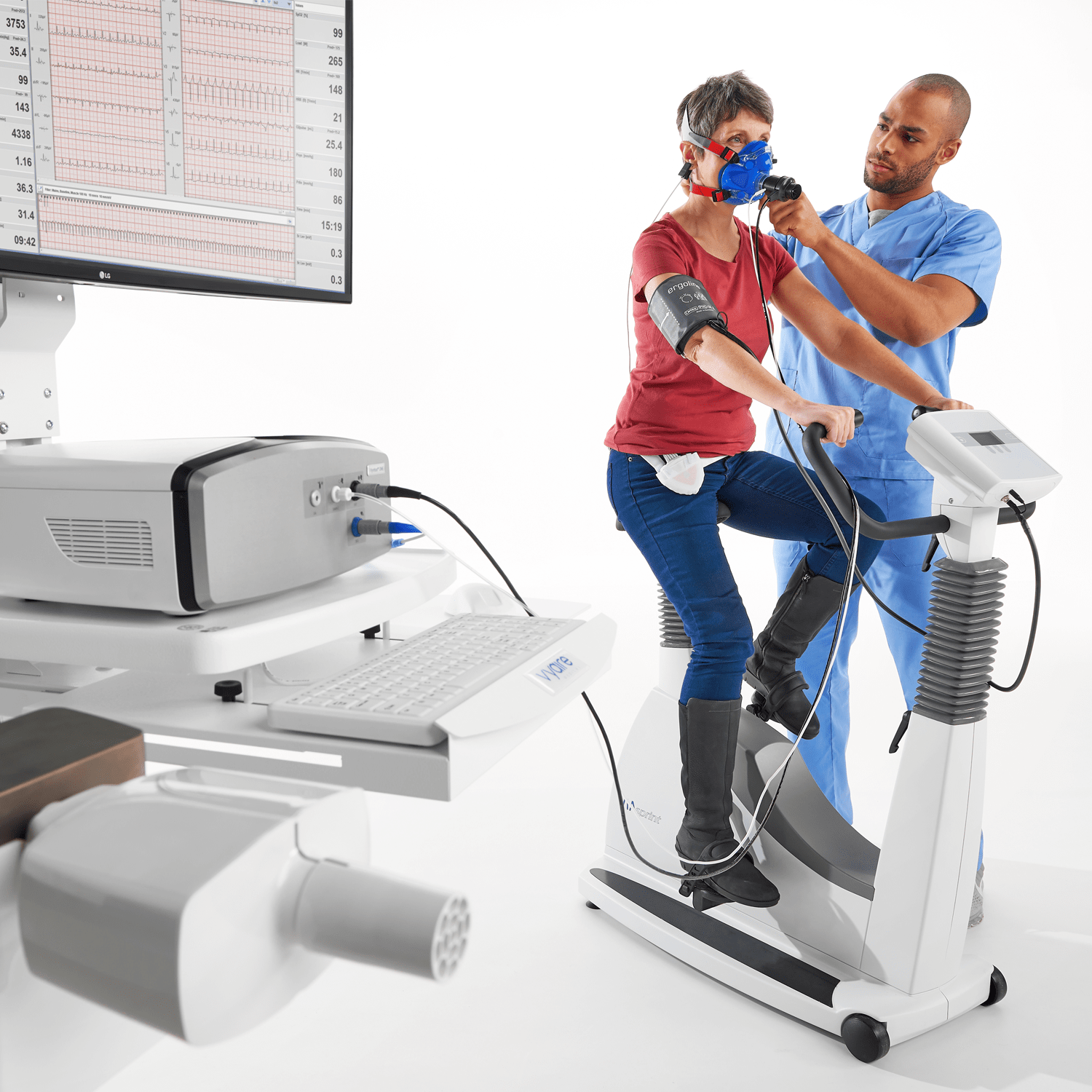Digital volume transducer to measure CPET Breath-by-Breath. Combine your Vyntus ONE with various bikes, treadmills and the bluetooth Vyntus ECG to be ready for cardiopulmonary exercise tests.